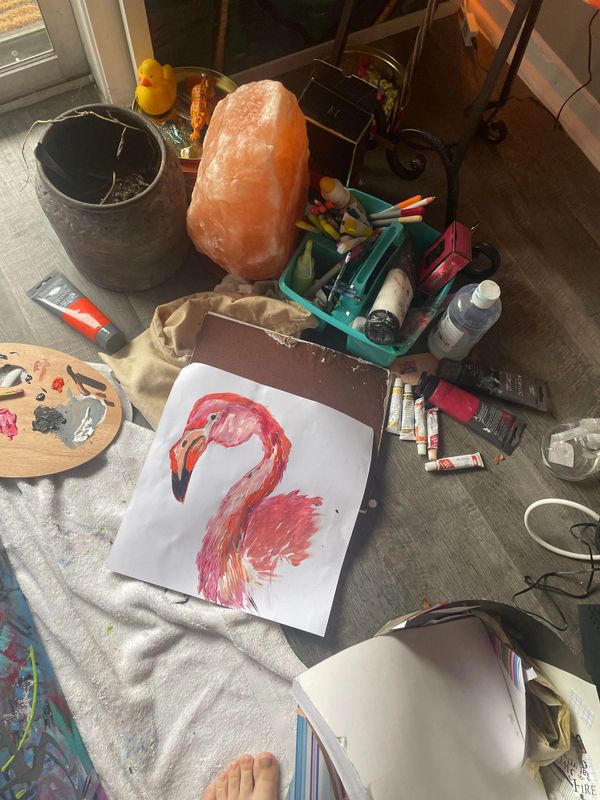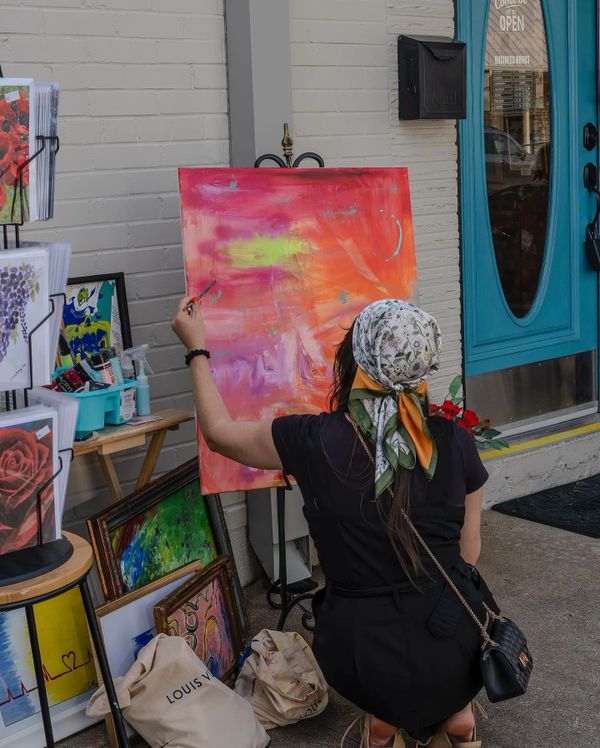 Courtney Paige is a self taught colorist- Abstract/ mixed media artist in Austin, Texas. With some University experiences at UMHB and Baylor University, she studied interior design and took formal art classes while studying anthropology. Her artwork is Inspired by artists such as Picasso and Lisa Frank and even the modern Banksy style street graffitti. Her style is fluid, organic, abstracts in the fashion of prominent artists like Wassily Kandinski, and other members of the art community often reference her work as contemporary- and " avant garde " With consistent use of vibrant colors and hasty brush strokes.