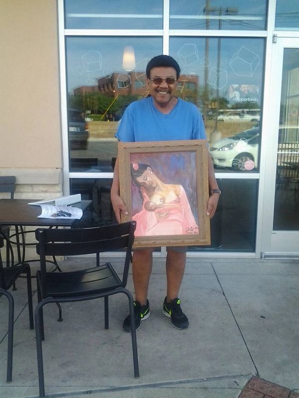 Imitation oil painting "Picassos mother nursing child" hand painted and sold at the Harker Heights Farmer's Market 2016